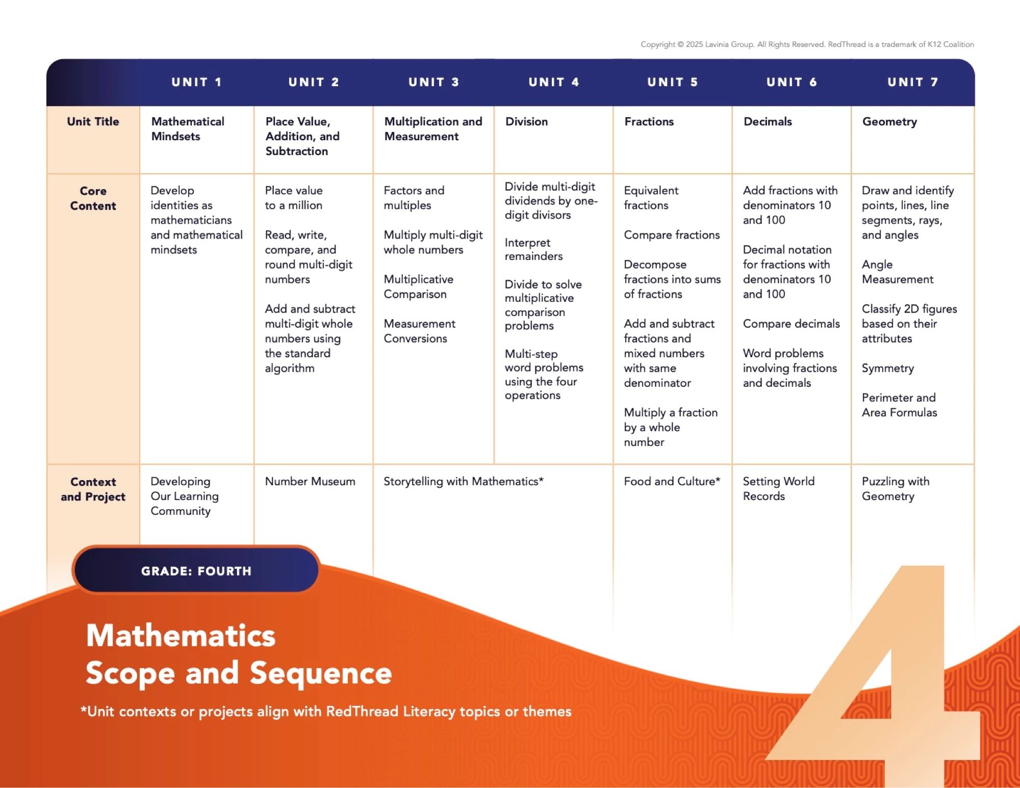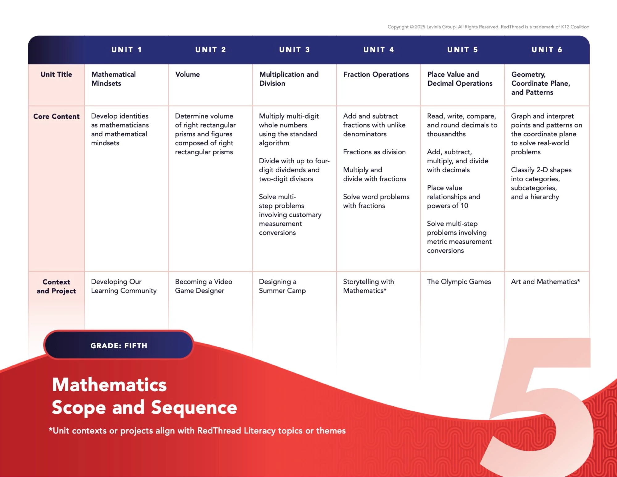 RedThread Mathematics sets a new standard by being project-based at its core, not as an add-on. Each unit invites students into authentic, real-world projects that make math purposeful, connected, and exciting. Combined with intentional teacher support and strong conceptual foundations, RedThread helps every K–5 learner build deep understanding, confidence, and true mathematical agency.